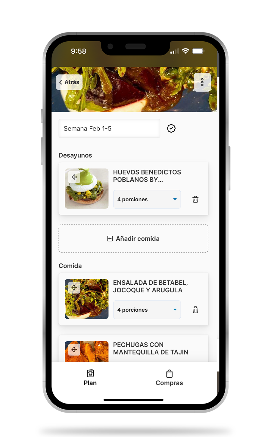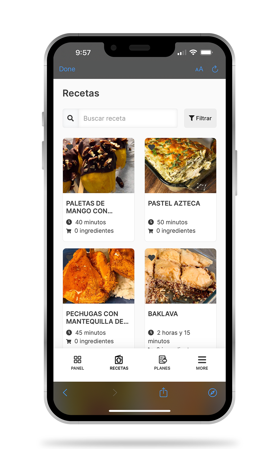 Tenemos la mejor solución para que ya no pierdas el tiempo en decidir y organizar tus comidas de la semana, con lista de súper y recetas con video paso a paso, de una manera muy fácil, rápida y eficiente.